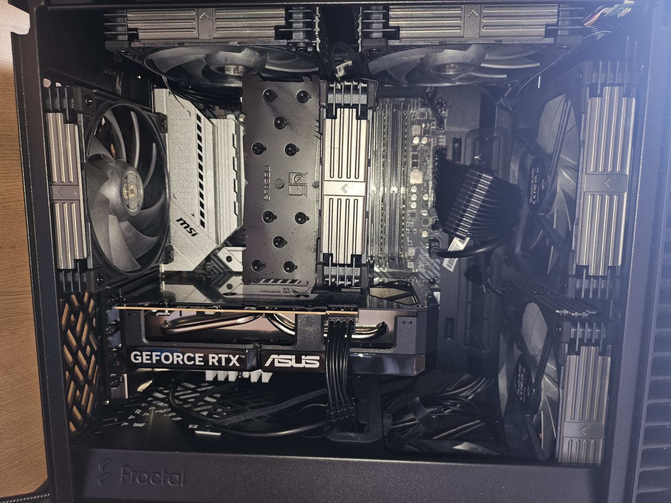 ファンの厚みのせいでいろいろ苦労したが、下手な水冷より見た目も効果も上じゃあないかと思うことにしている、NICのエアフローを確保できていないのが不安だが