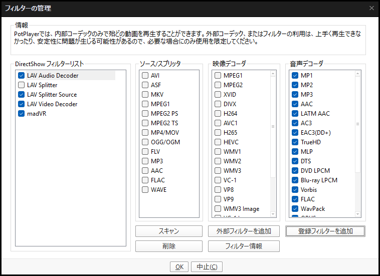 LAV SplitterなどChatGPTのおすすめを追加済み、追加するには
