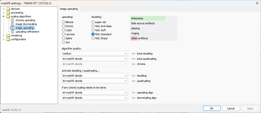 ChatGPTは「madVRのみが最も自然で良い」と言うが、設定が難解